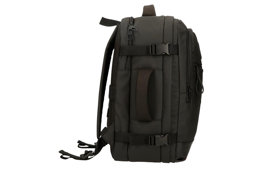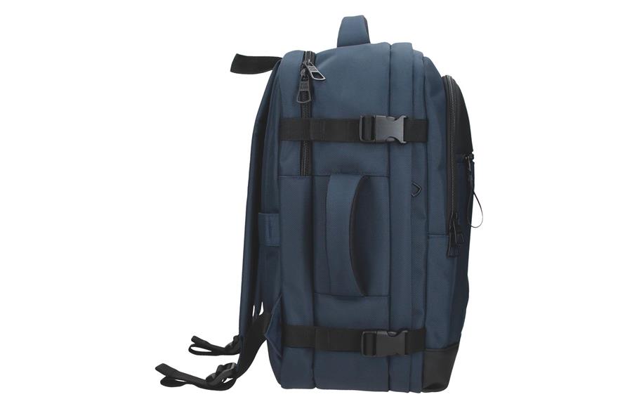 Kabinski laptop ranac izrađen je od vodootpornog poliestera sa sofisticiranim detaljima od sintetičke kože. Glavni odeljak sadrži dva unutrašnja dela: jedan sa rajsferšlusom za dokumenta i drugi sa elastičnim trakama koje stabilizuju garderobu. Ugrađeni USB port s kablom omogućava punjenje telefona ili slušalica dok ste u pokretu—samo povežite eksternu bateriju iznutra. Zadnji, postavljeni odeljak štiti laptop do 15,6″ i tablet, držeći ih odvojeno od ostatka stvari. Prednji odeljak je sa mrežastim džepom i organizatorom održava punjače, kablove i sitnice preglednim. Bočne, široke i mekano postavljene naramenice ravnomerno raspoređuju težinu, dok zadnja traka omogućava brzo kačenje na teleskopsku ručku kofera. Stil, funkcionalnost i udobnost u jednom laganom rancu – savršen izbor za poslovna putovanja, vikend begove ili svakodnevni radni tempo.