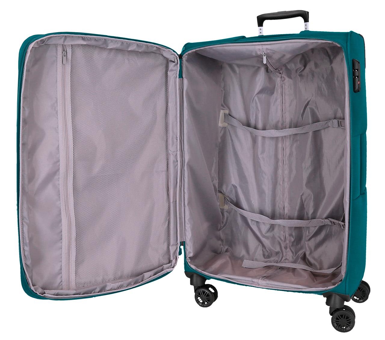 Putujte sa stilom uz veliki kofer Atlanta brenda Movom u tirkiznoj boji od platna.