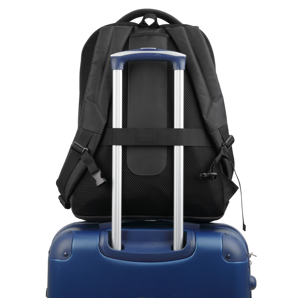 Ranac sa dva glavna odeljka uz posebno postavljene pregrade za laptop do 13,3 inča i tablet. Prednji džep sa rajsferšlusom sadrži dodatne pregrade za uredno čuvanje sitnica. Široke, ergonomski oblikovane i postavljene naramenice savršeno se prilagođavaju leđima, a zadnja traka omogućava lako pričvršćivanje na kofer tokom putovanja. Ugrađeni USB port sa kablom omogućava povezivanje na eksternu bateriju — za punjenje u pokretu, bez kompromisa.