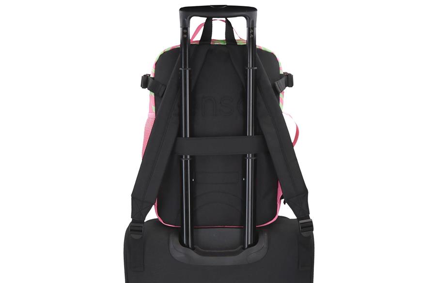 Funkcionalan ranac sa glavnim odeljkom koji sadrži dva praktična pretinca – jedan sa rajsferšlusom i drugi sa elastičnim trakama za dodatnu sigurnost stvari. Ugrađeni USB port sa kablom omogućava jednostavno povezivanje s eksternom baterijom za punjenje uređaja u pokretu. Zadnji odeljak namenjen je za laptop do 15,6 inča i tablet, dok se u prednjem delu nalazi organizator sa džepovima za sve lične stvari i gedžete. Ranac ima široke, ergonomske i postavljene kaiševe koji savršeno prijanjaju uz leđa, kao i zadnju traku za lako kačenje na ručku kofera prilikom putovanja.