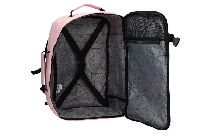 Kabinski ranac dimenzija 25 cm x 40 cm x 20 cm, izrađen od poliestera, idealan je kao ručni prtljag za putovanja. Glavni odeljak sadrži dve praktične unutrašnje pregrade – jednu sa rajsferšlusom, a drugu sa elastičnim trakama za bezbedno odlaganje stvari. Prednji odeljak opremljen je džepom i unutrašnjim organizatorom, savršenim za gedžete ili lične stvari. Uz široke, ergonomske i postavljene kaiševe, ranac se savršeno prilagođava leđima, pružajući maksimalnu udobnost. Zadnja traka omogućava lako pričvršćivanje na kofer, olakšavajući nošenje tokom putovanja.