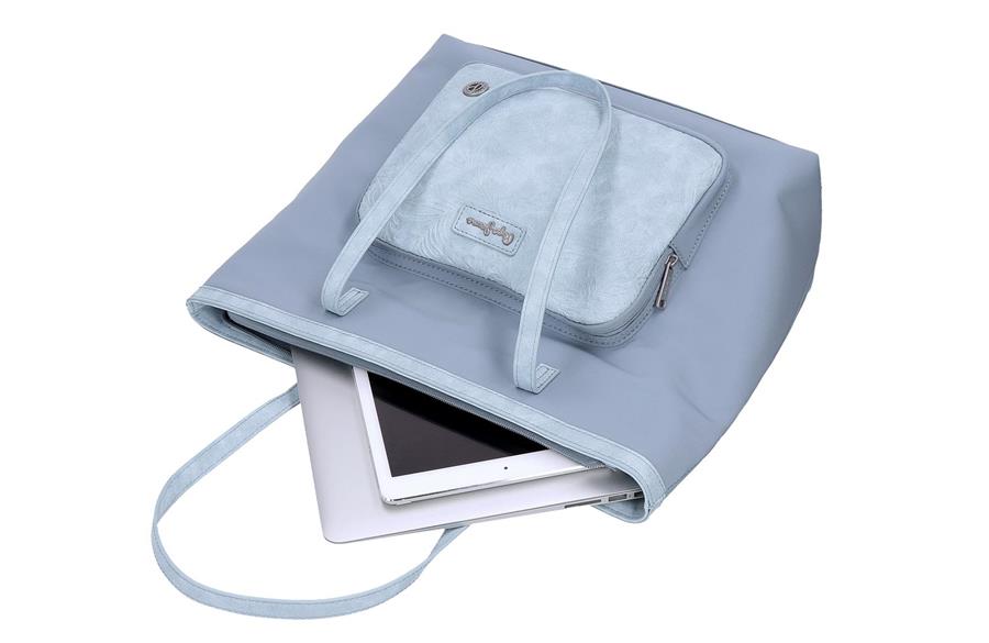 Prostrana torba savršena za svakodnevne obaveze, posao ili kraća putovanja. Izrađena od izdržljivog poliestera sa detaljima od eko kože, kombinuje funkcionalnost sa elegantnim izgledom. Unutrašnjost krije dva posebno dizajnirana odeljka — jedan za laptop do 15 inča i drugi za tablet do 10,2 inča — pružajući sigurnost i organizaciju za tvoju tehniku. Zahvaljujući dugoj ručki, torba se udobno nosi preko ramena, čineći je idealnim izborom za dinamičan dan u pokretu.