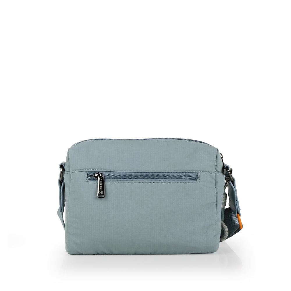Izuzetno praktična torba sa velikim i dobro organizovanim prostorom. Torba ima jednu glavnu pregradu, kao i zadnji skriveni džep sa zipom. Predji džep je prakitčan za sve stinice koje su vam u trenutku neophodne (telefon, ključevi, maramice). Sve pregrade se zatvarju kvalitetnim zipom. Napravljena je od vodootpornog materijala bez PVC primesa, lako se održava .