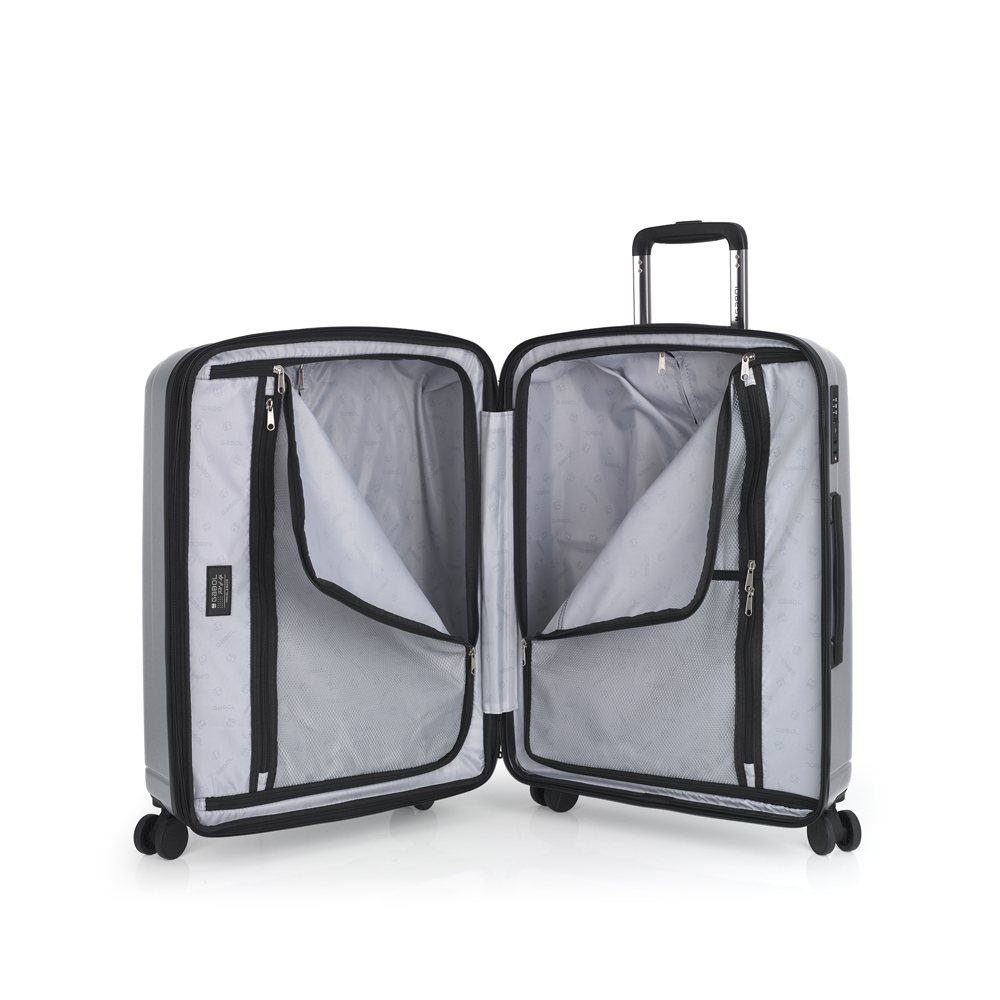RADAR srednji kofer (M) Gabol u srebrnoj boji nudi praktično rešenje za putovanja zahtevaju više prostora. Sa dimenzijama 45x65x28 cm, dobar je za srednji prtljag.
