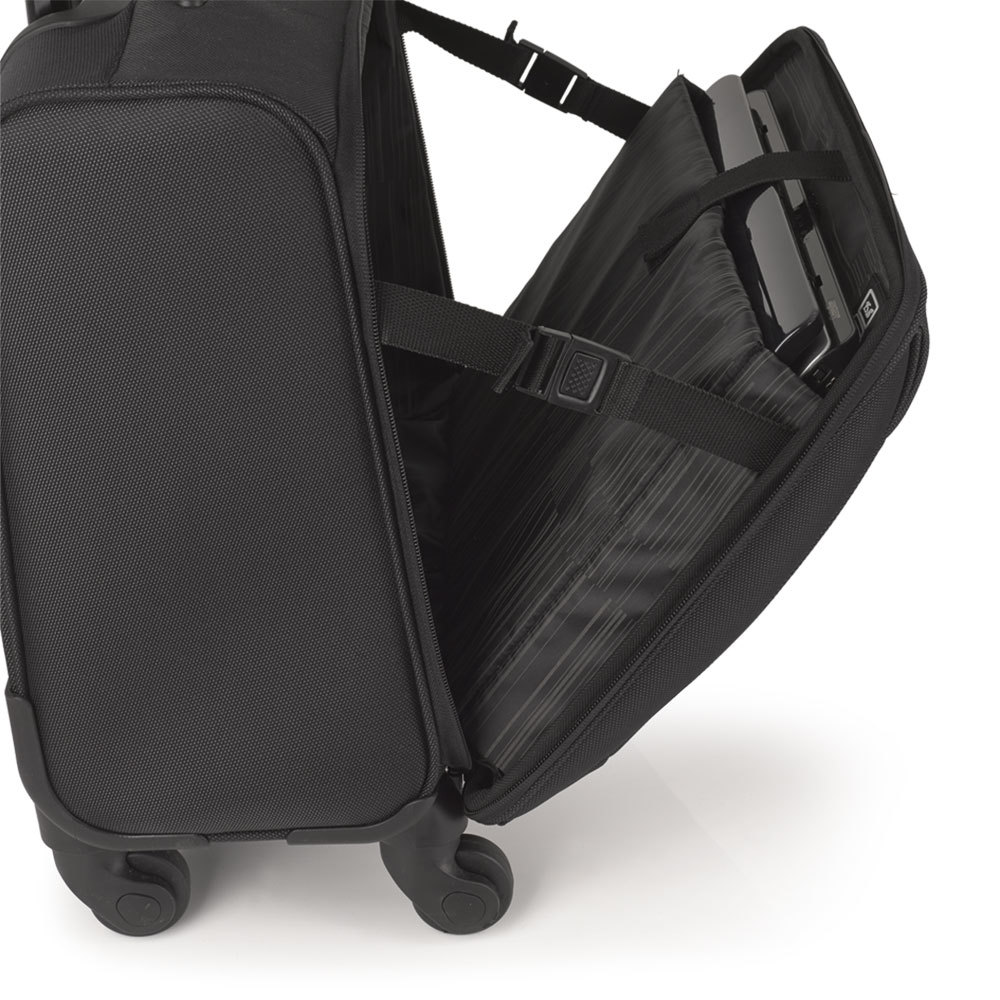 Ova lagana pilot torba koja poseduje 4 silikonska točka je izuzetno rešenje, kako za kraća putovanja, tako i za uobičajen radni dan. U unutrašnjosti torbe ima dovoljno prostora za garderobu i sl., a nalazi se i poseban ojačani odeljak za notebook računar veličine do 15,6″. Sa prednje strane se nalazi dodatni džep idealan za odlaganje dokumentacije koja treba da vam bude uvek pri ruci.